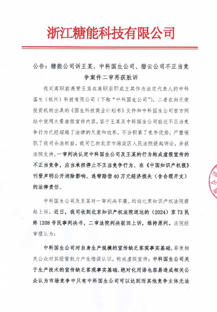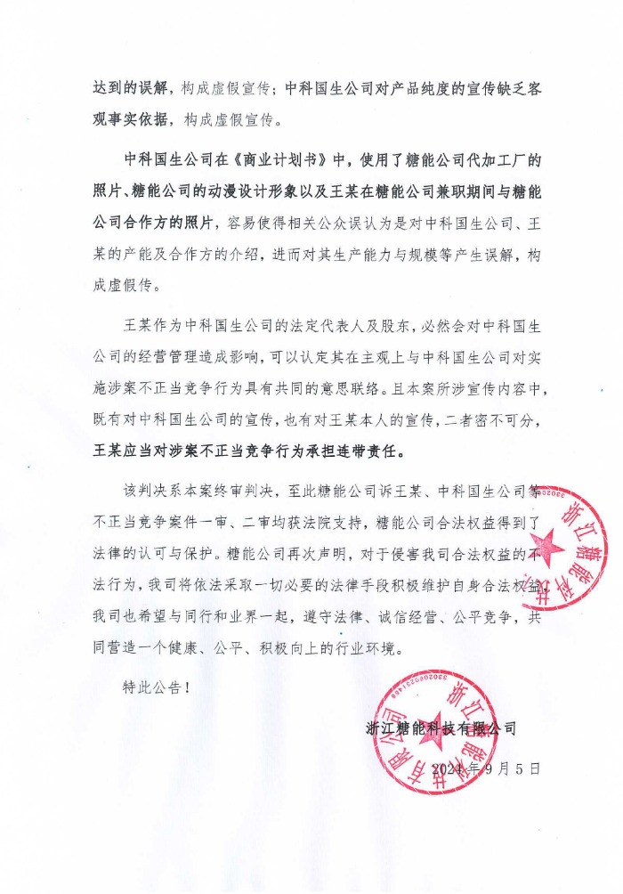 Thông báo: Sugar Energy đã thắng trong phiên tòa thứ hai trong vụ kiện cạnh tranh không lành mạnh chống lại Wang, Công ty Zhongke Guosheng và Công ty Lieyun